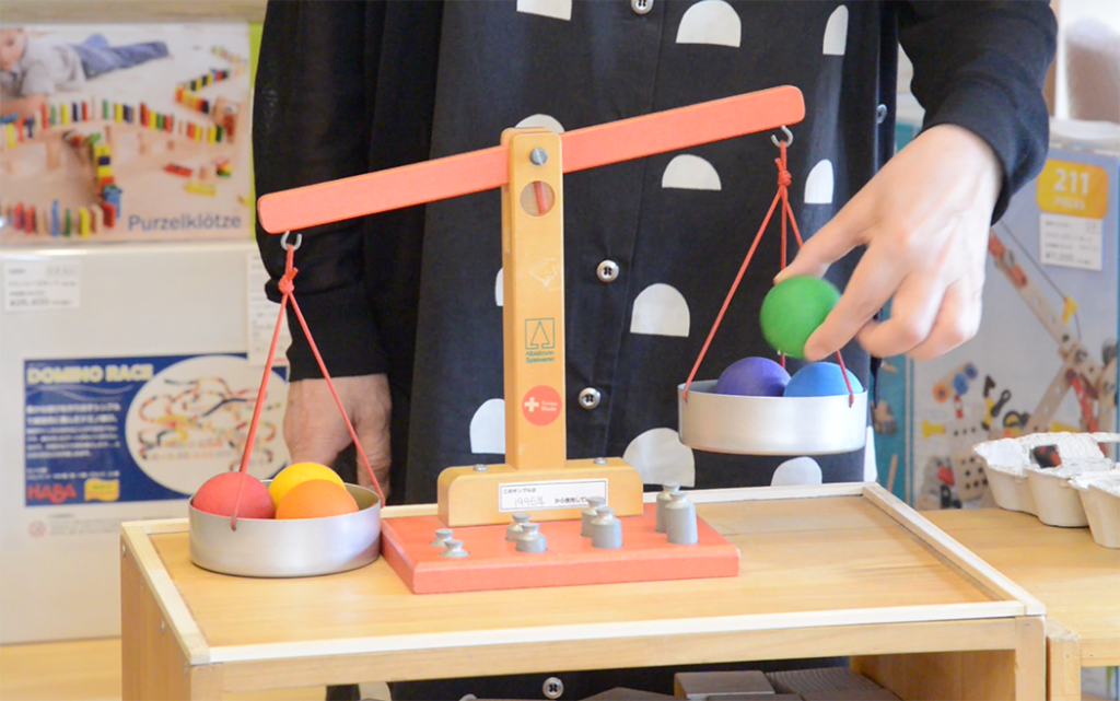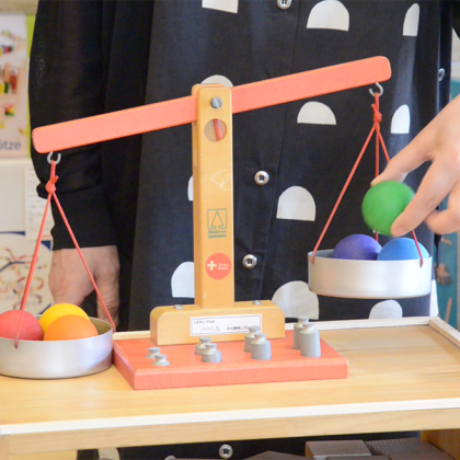 アルビスブラン社の方が作った、こどもたちへの「はかり」遊び。最後のご注文をお待ちしています。