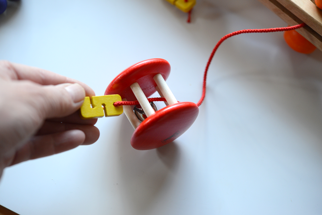 おもちゃを引っ張っても安心なしっかりした素材と形状の台です。