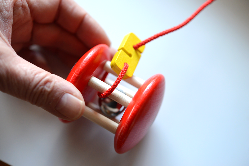 お家でお気に入りのおもちゃを下げましょう。重いものは下げません。