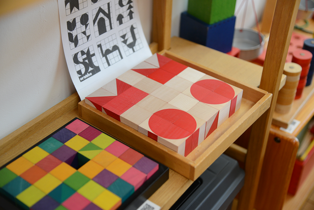 先日の「つみきのおうち」のおもちゃの棚に、あれあれ?
