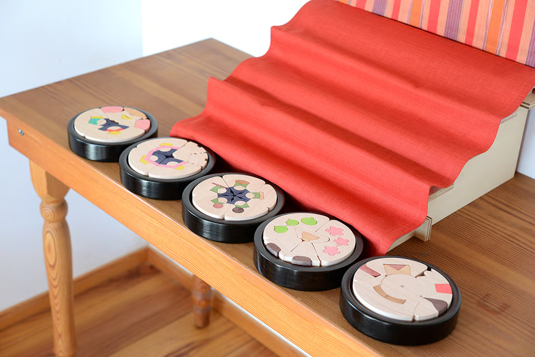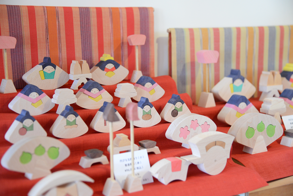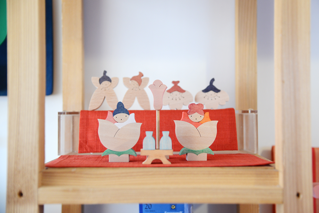 一つの木が小黒三郎さんのデザインで分けられて、こんなに素敵なお人形になります。こどもが出して飾ること、こどもが器に収めることまで遊びです。