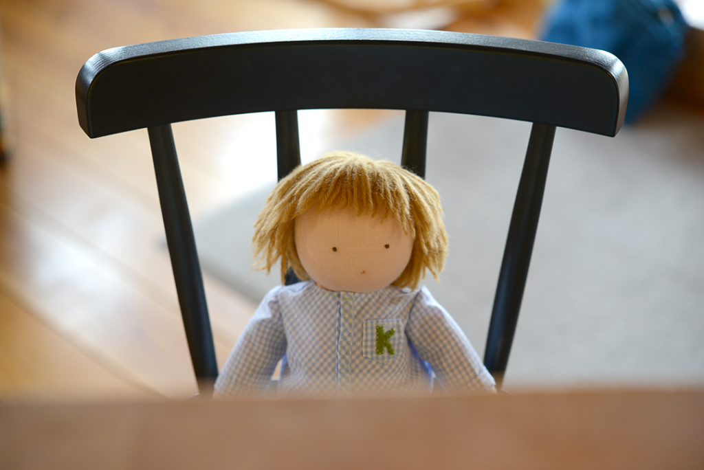 お母さんが作った、手づくりのお人形の男の子のおきゃくさまです。