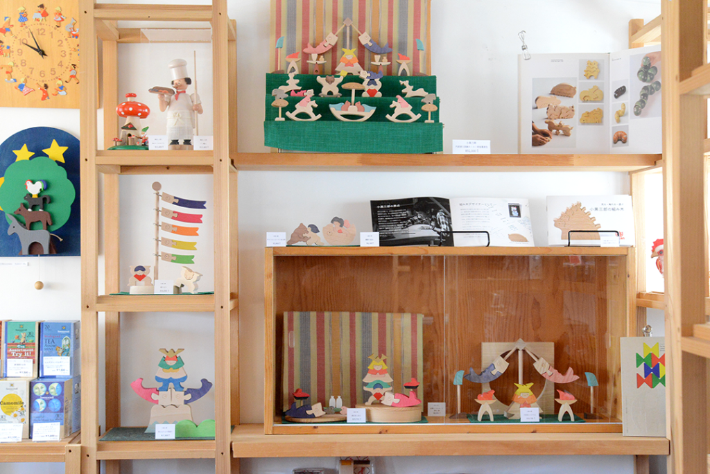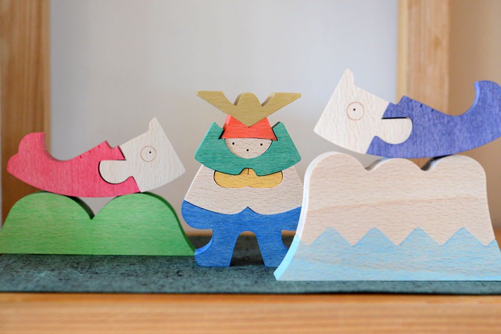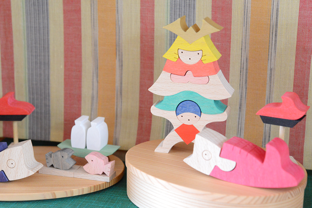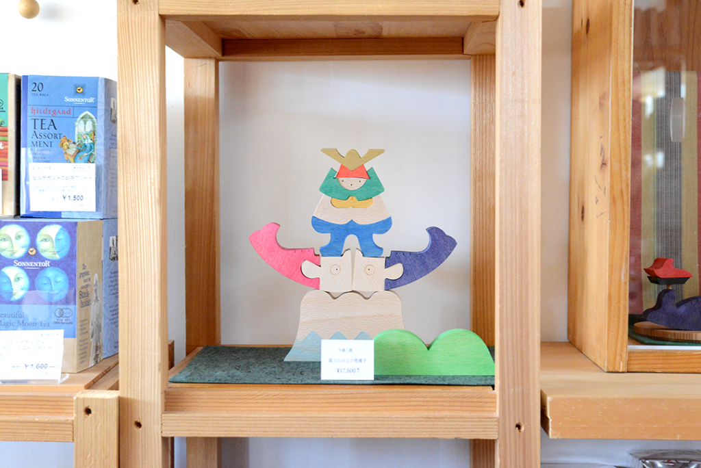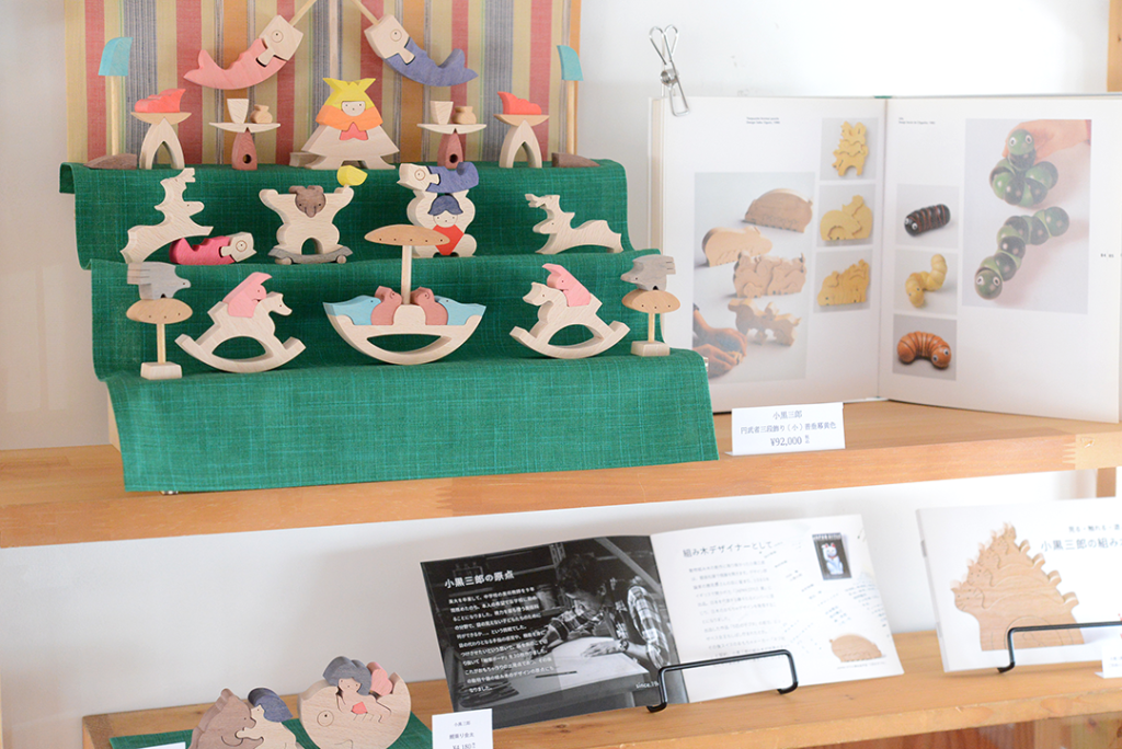 MOMO店頭に小黒三郎さんの組み木の五月人形が並びました。